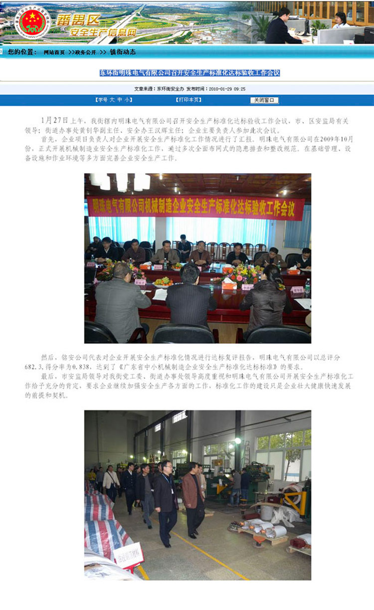明珠電氣召開安全生產標準化達標驗收會議