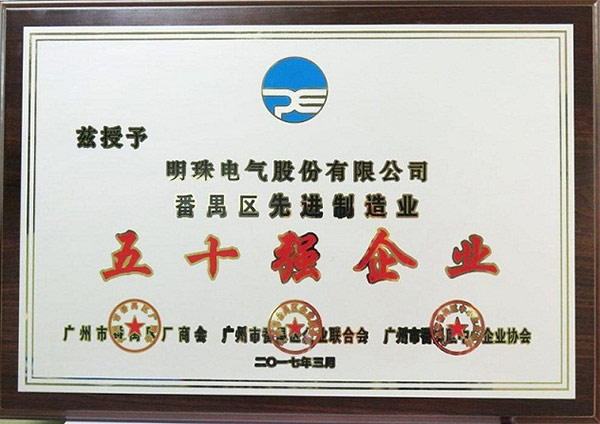 我公司被評為“番禺區先進制造業50 強企業”彰顯了我公司雄厚的實力和社會各界的認可,進一步提升我公司的名譽及品牌價值,為公司的可持續發展提供保障。大浪淘沙,不進則退,在世界經濟全球化進程大大加速的今天,機遇與挑戰并存。明珠電氣將秉持服務客戶,造福社會的信念,應對國際化的競爭法則與商業標準,開拓思路,與時俱進,創建明珠一流的品牌,讓明珠散發出絢麗的光彩。